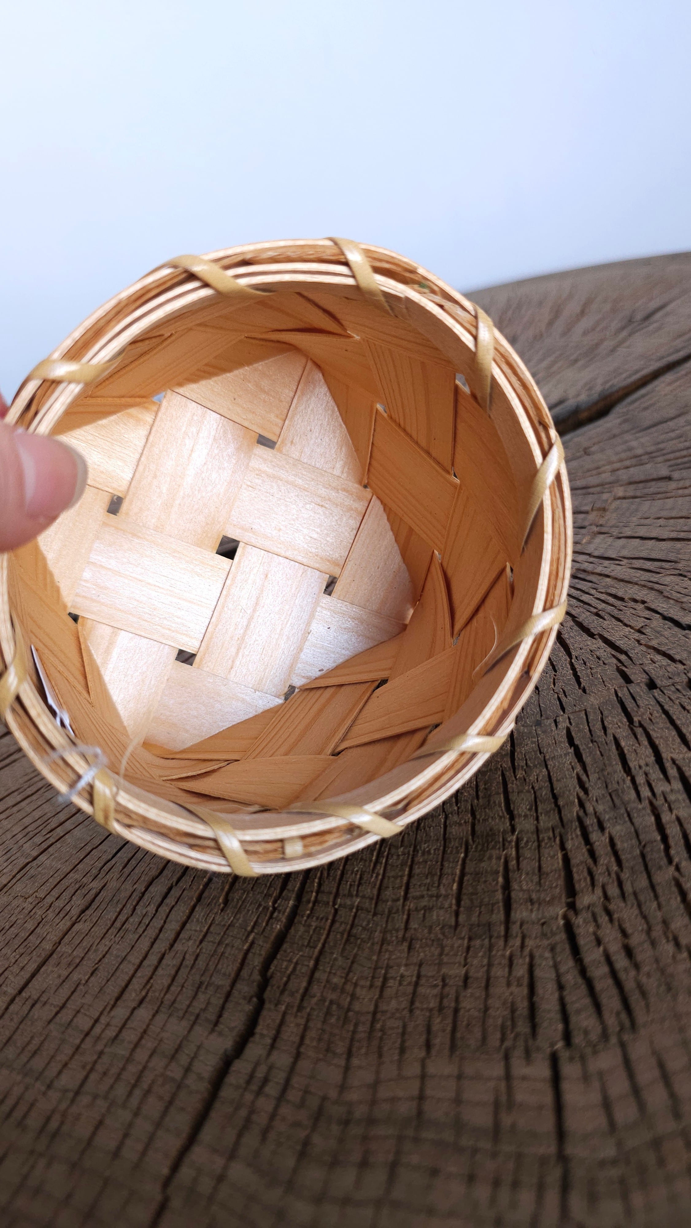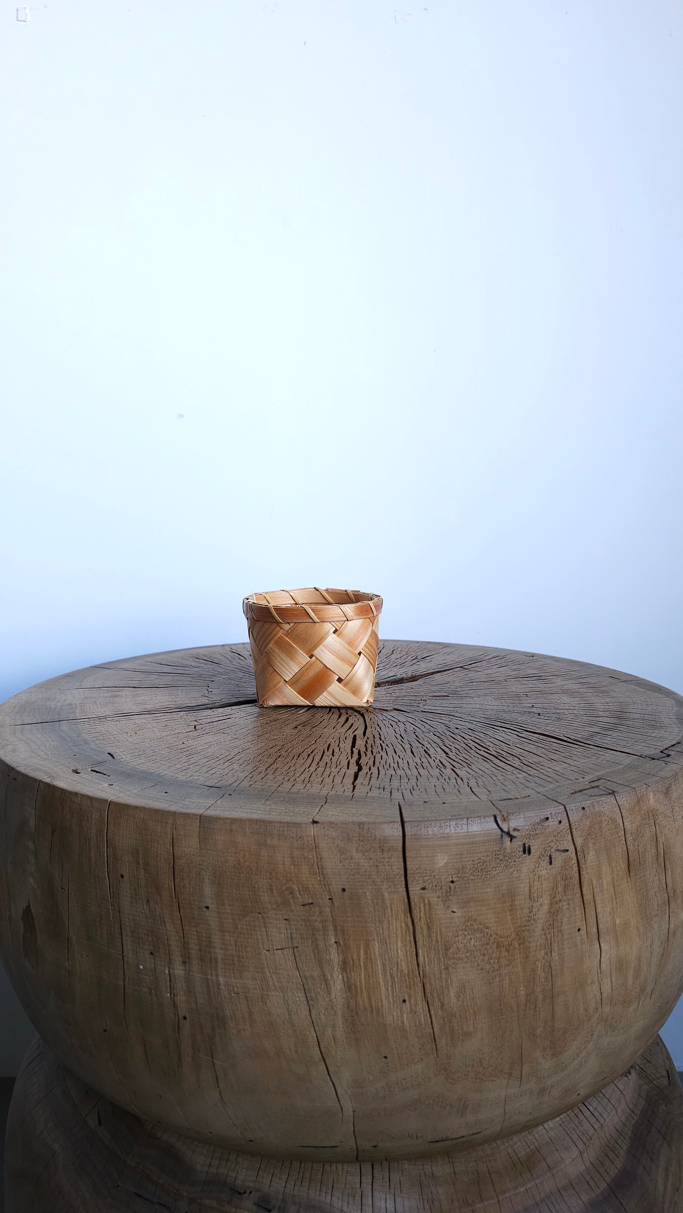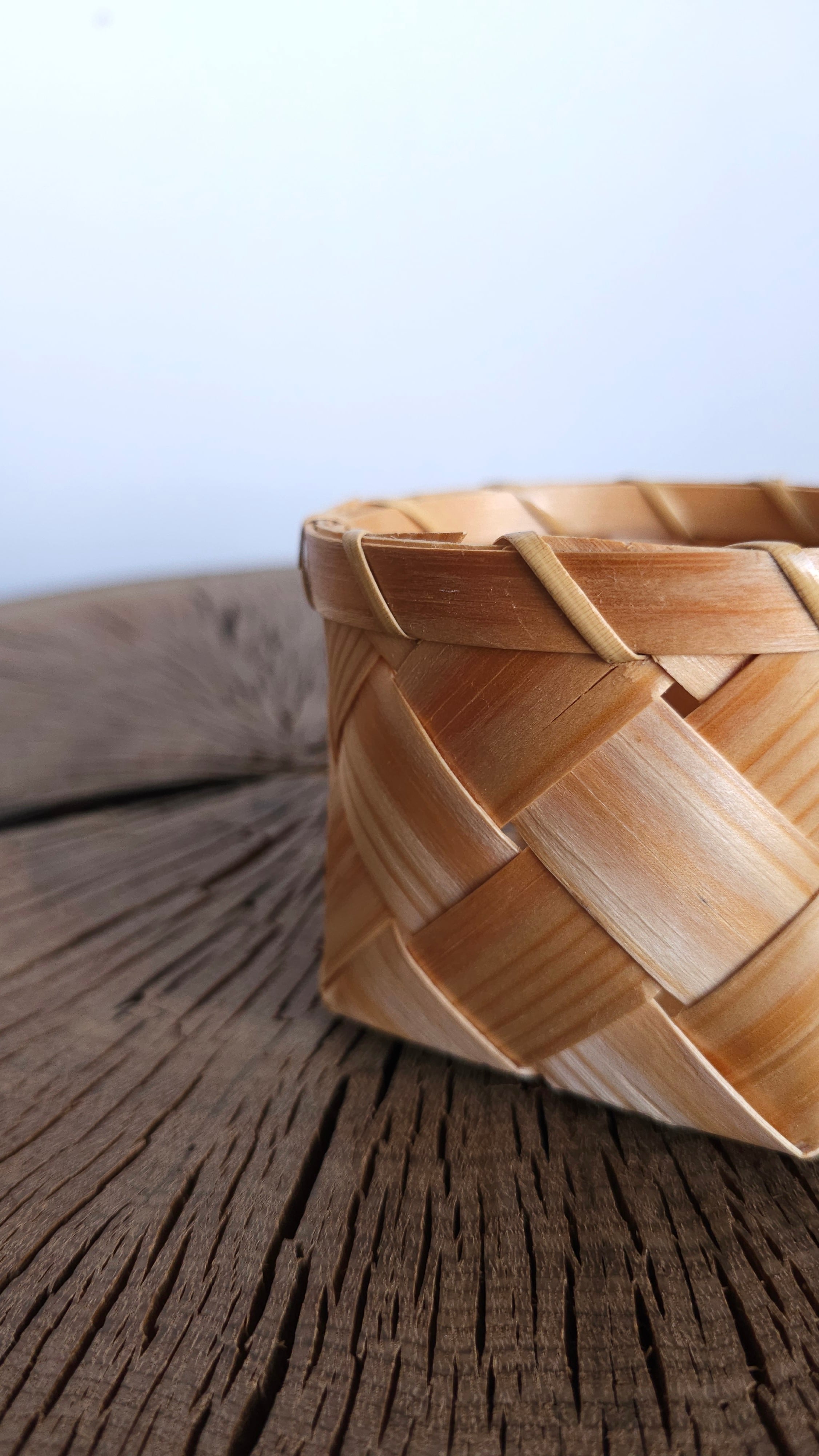 松の木を薄く裂いて編まれた籠