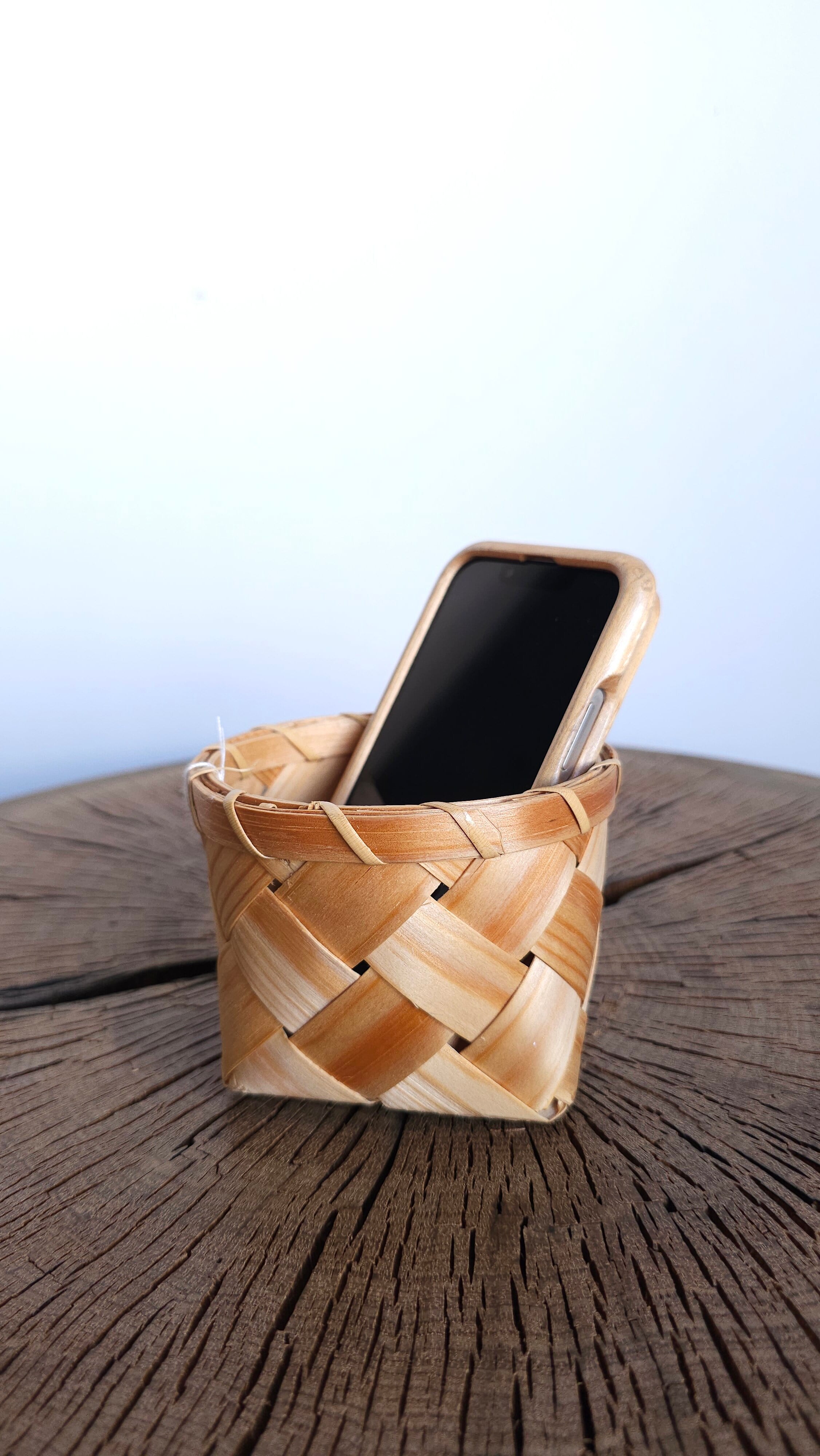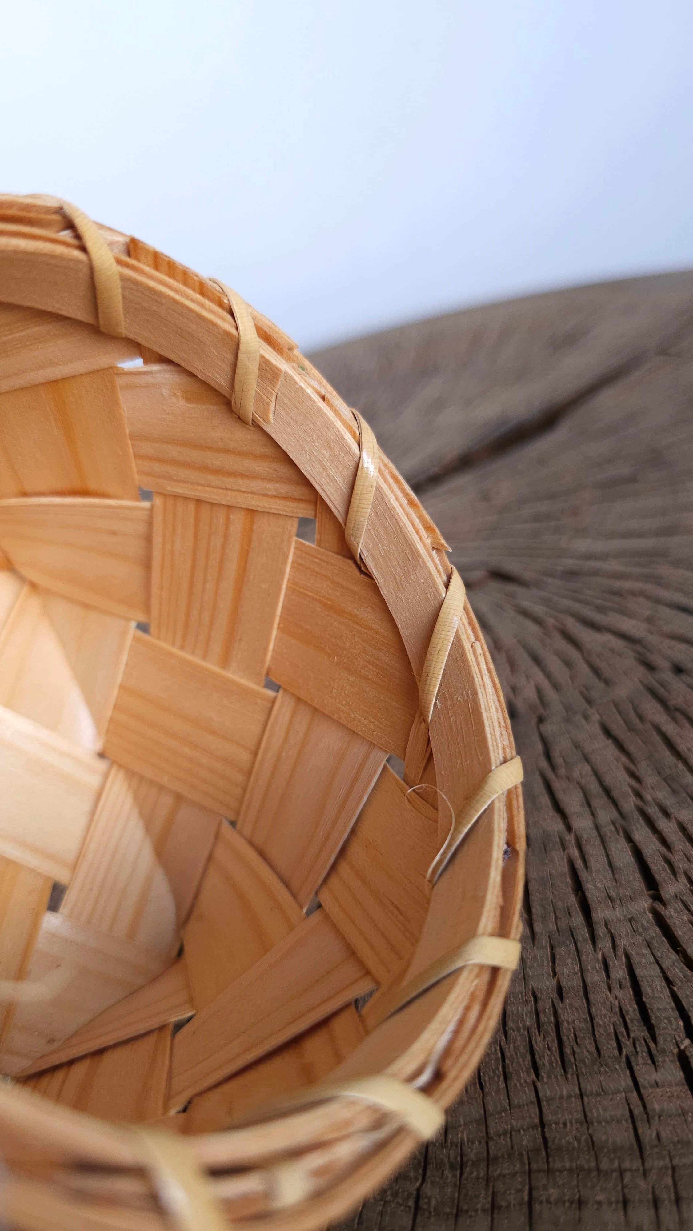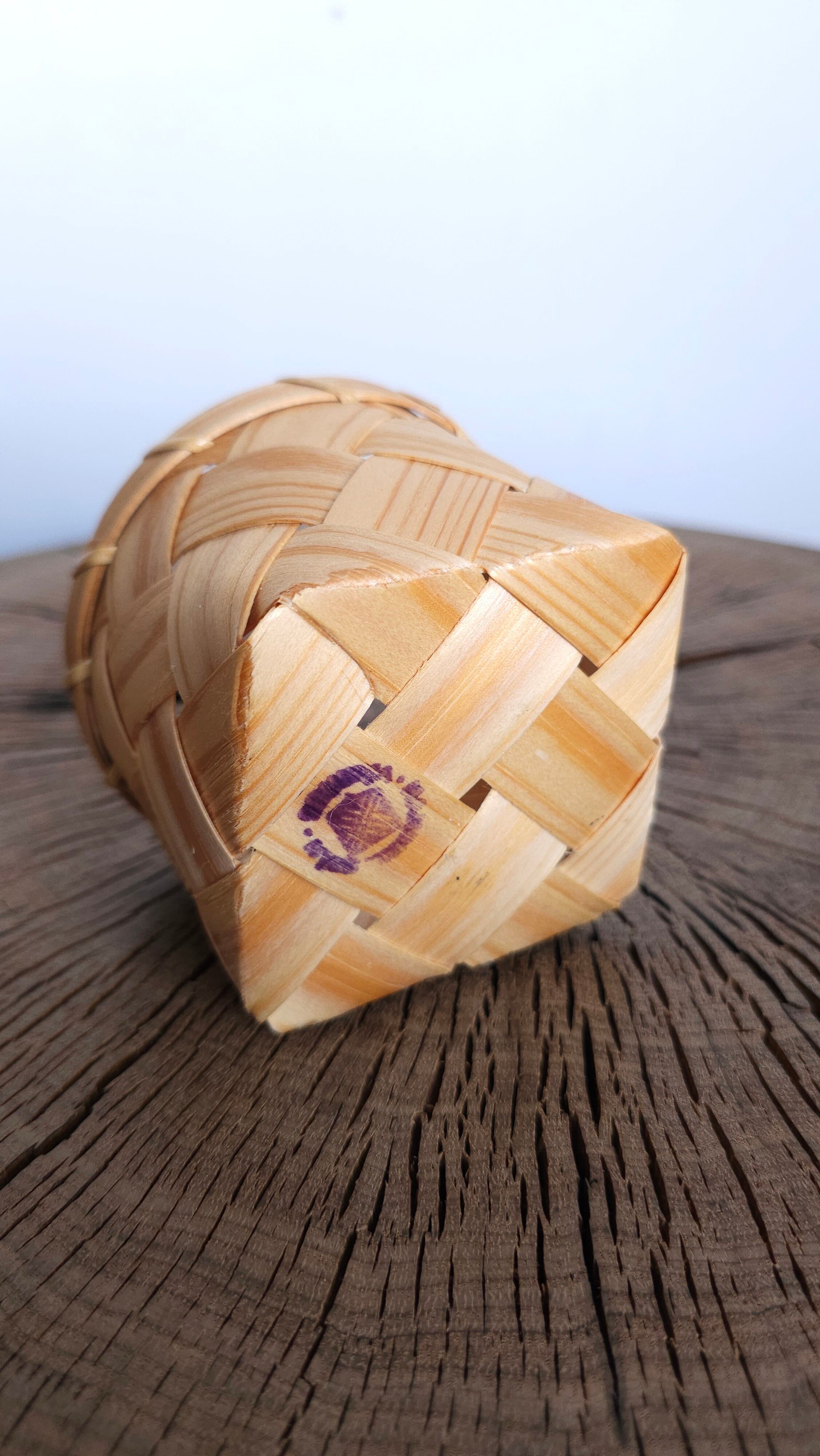 松の木を薄く裂いて編まれた籠