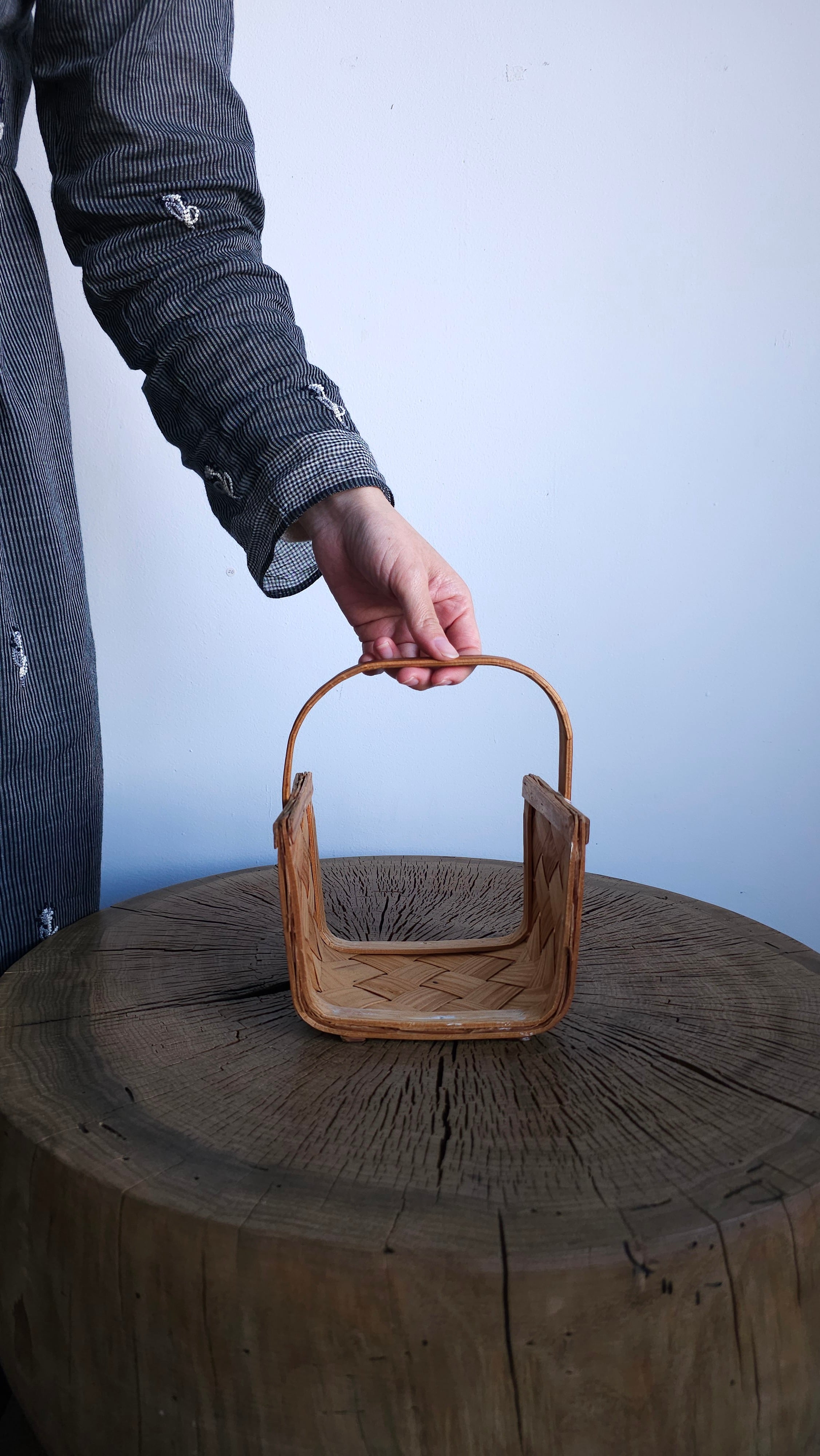 松の木を薄く裂いて編まれた籠