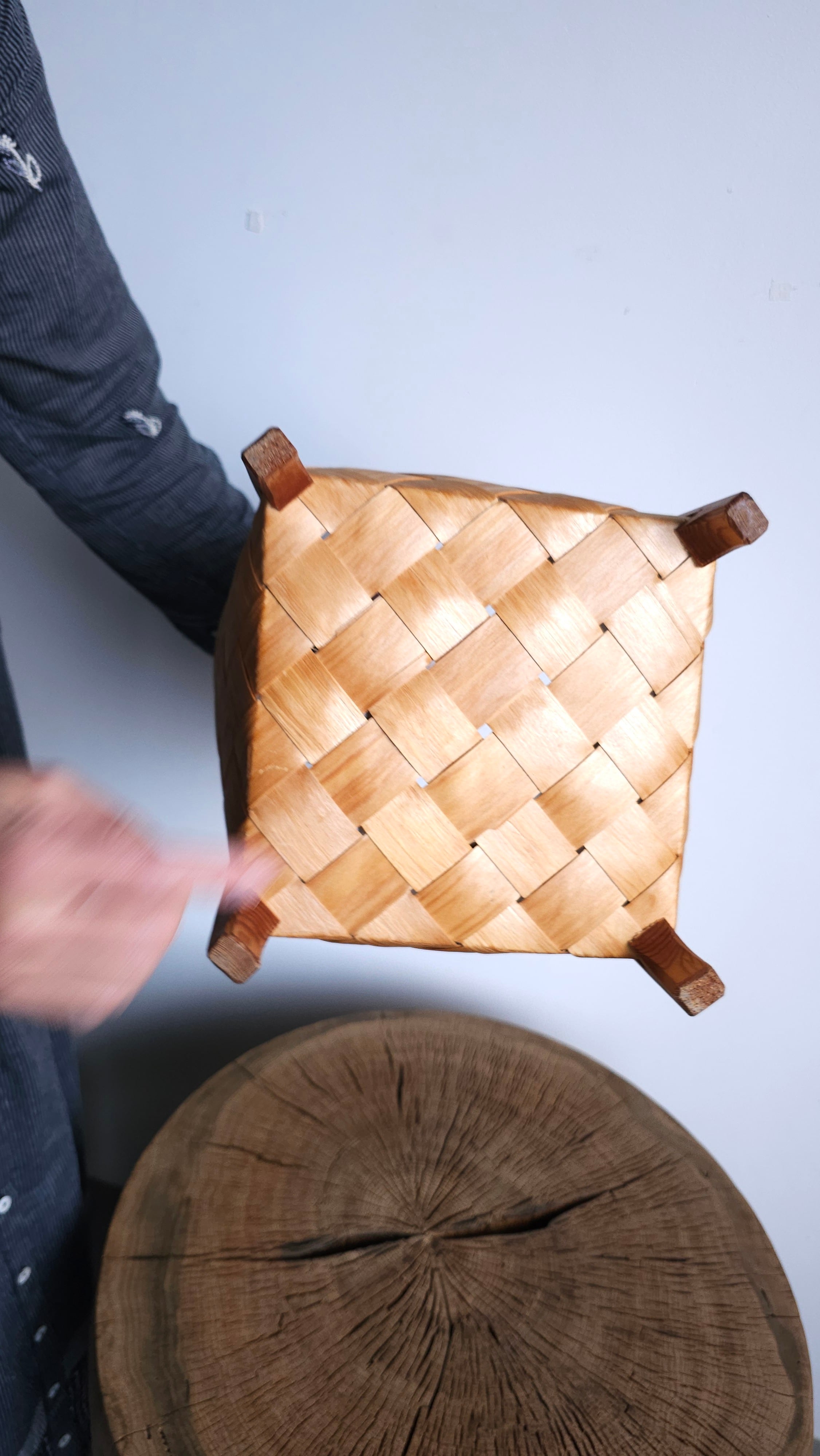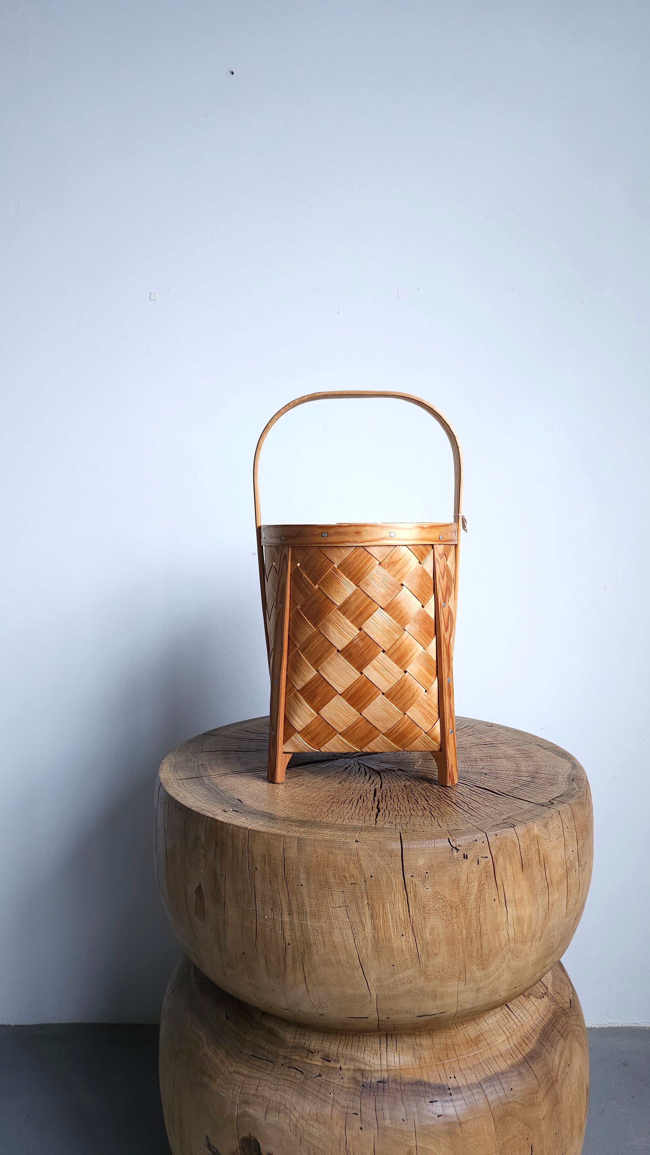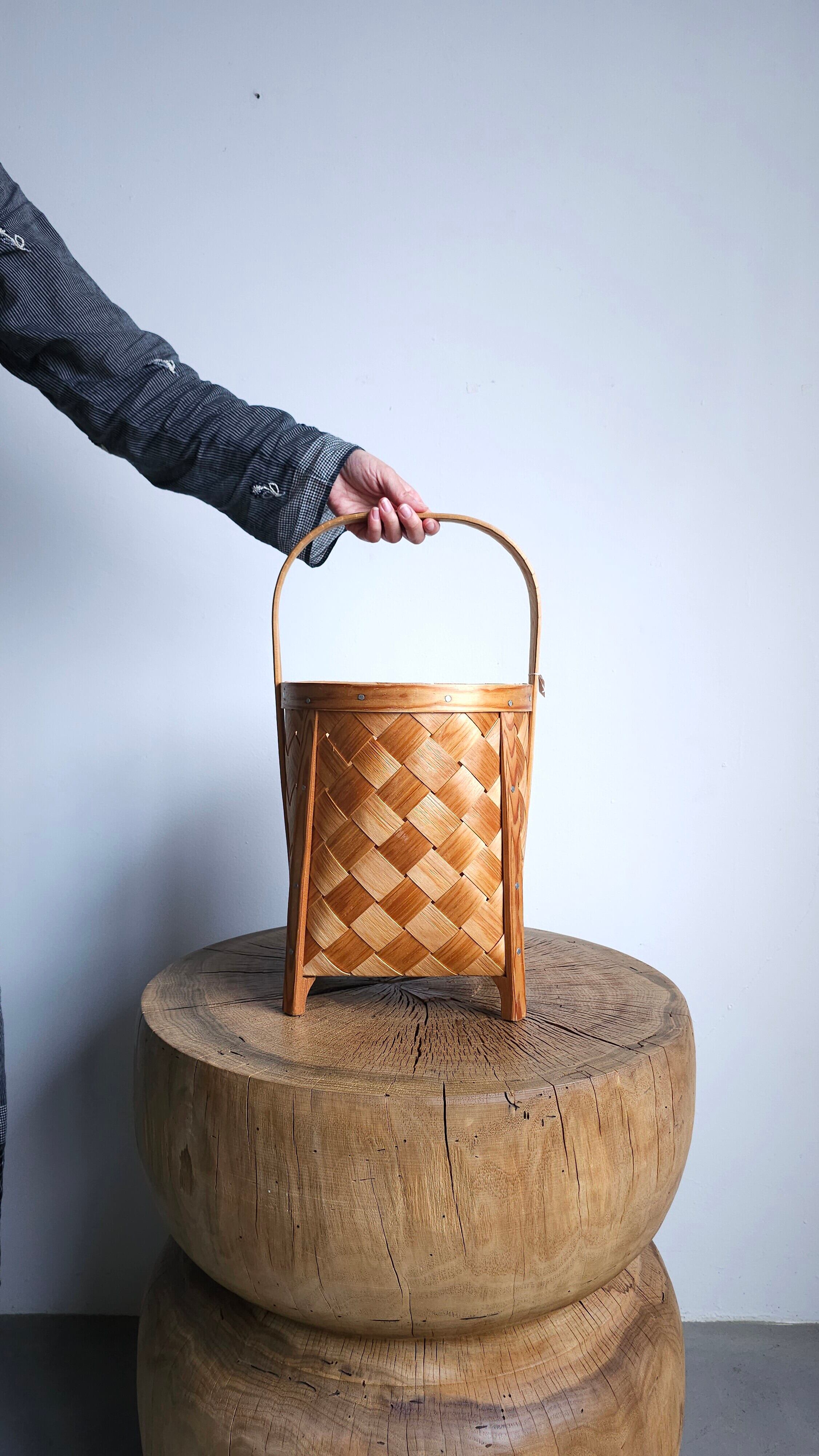 松の木を薄く裂いて編まれた籠