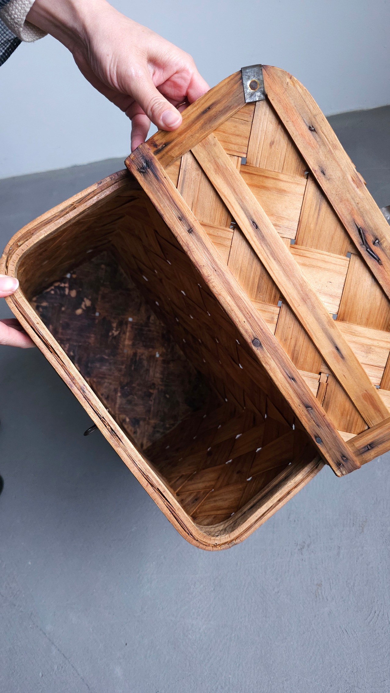 松の木を薄く裂いて編まれた籠