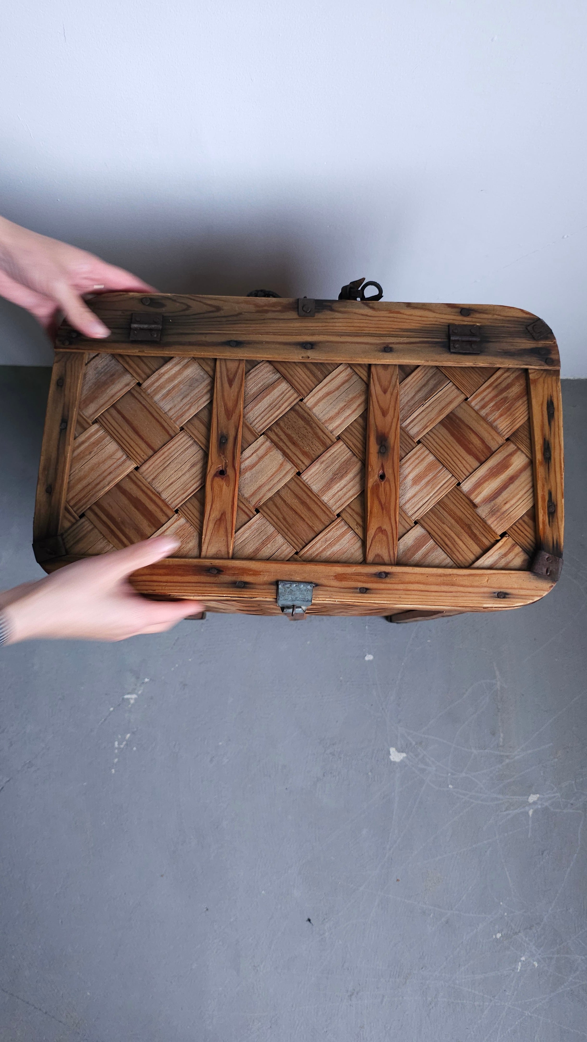 松の木を薄く裂いて編まれた籠
